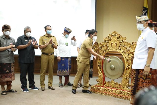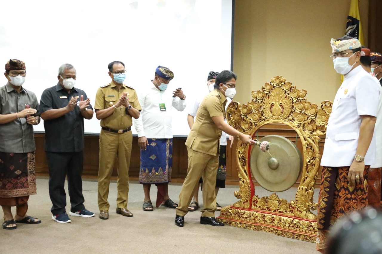 LOKASABA – Bupati Giri Prasta saat membuka acara Lokasaba V Pasemetonan Pratisentana Bendesa Manik Mas Kabupaten Badung di Puspem Badung, Senin (7/12/2020).