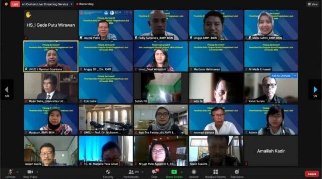LPPM Universitas Udayana dan Pusat Penelitian Kebudayaan, bekerja sama dengan Badan Riset Inovasi Nasional (BRIN) menggelar sosialisasi “Peluang dan Insentif Penerbitan Buku Program Akuisisi Pengetahuan Lokal di Penerbit BRIN”, Selasa (28/12) secara virtual via zoom meeting. Kegiatan tersebut diikuti sekitar 300 peserta dari civitas akademika Unud, ISI Denpasar, ISBI Bandung, Universitas Sumatera Barat Pariaman, Universitas Negeri Jakarta dan universitas lainnya.