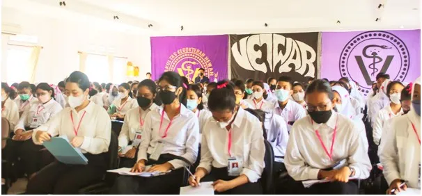 Kurang lebih 150 mahasiswa baru mengikuti kegiatan PKKMB 2022 Fakultas Kedokteran Hewan Universitas Udayana yang bertempat di Ruang Sidang Lt. 4 Gedung Student Center Universitas Udayana. Kegiatan ini berlangsung selama dua hari, 10-11 Agustus 2022. PKKMB 2022 FKH Unud mengusung tema menarik yaitu “Membangun Karakter Veteriner Muda yang Loyal, Mandiri, dan Berprestasi Menuju Generasi Profesional, Beretika, dan Berbudaya”. Makna dari tema tersebut adalah agar mahasiswa baru tumbuh karakter yang loyal dan mandiri serta berprestasi menjadi dokter hewan yang nantinya memiliki jiwa profesional yang berlandaskan etika dan budaya.