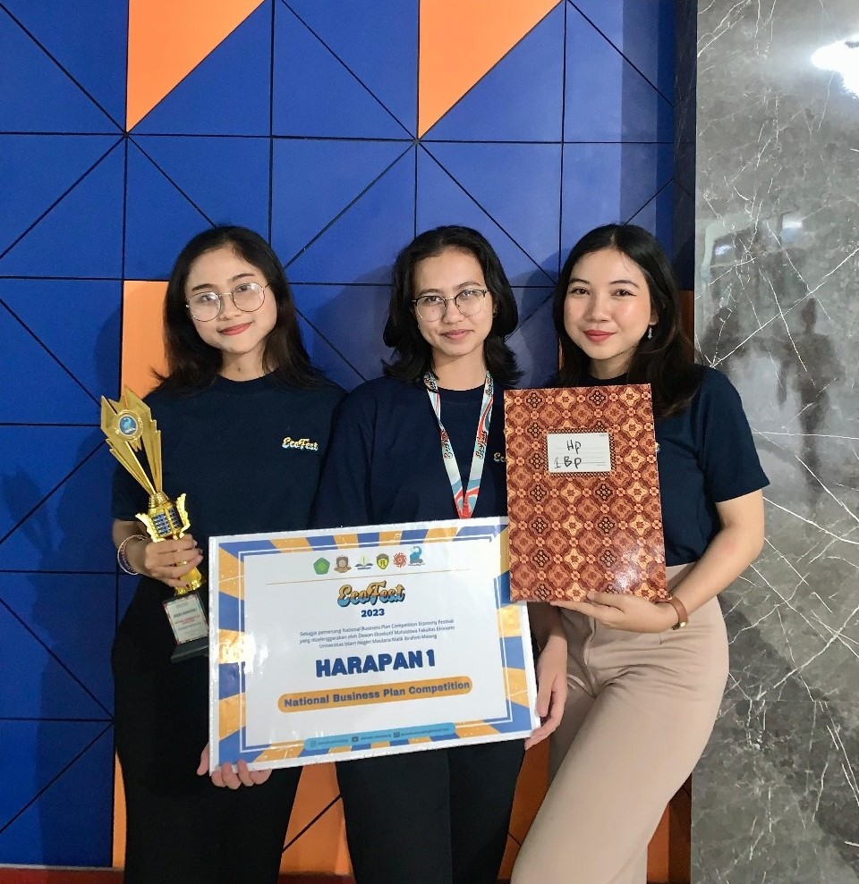 Mahasiswa Program Studi Sarjana Ekonomi Pembangunan Fakultas Ekonomi dan Bisnis (FEB) Universitas Udayana (Unud) yaitu Srikandi Team yang terdiri atas Anak Agung Made Dinda Riana Dewi, Ni Gusti Ayu Dwi Widyari, dan Ni Kadek Ambara Putri berhasil memperoleh juara harapan I dalam ajang perlombaan National Business Plan Competition Economy Festival 2023 yang diselenggarakan di Auditorium Fakultas Ekonomi UIN Maulana Malik Ibrahim Malang yang dilaksanakan pada 18 November 2023.