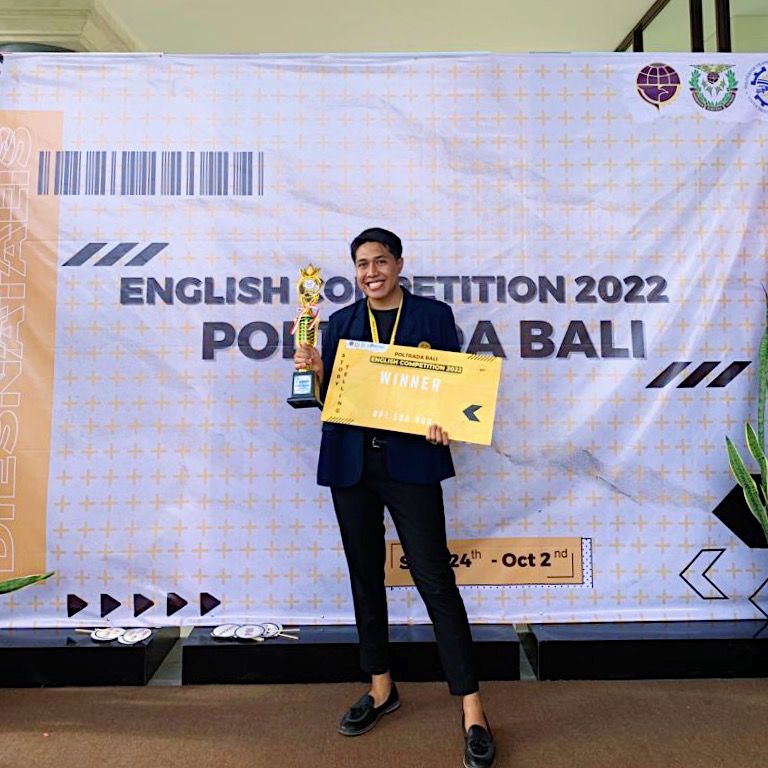 Salah satu mahasiswa berprestasi FH Unud, anggota Student Community For International Law (SCIL), I Gede Yoga Pradana Putra berhasil meraih juara pertama pada kompetisi “Story Telling” Poltrada BaliI English Competition 2022. Perlombaan ini dilaksanakan oleh Politeknik Transportasi Darat Bali dalam rangka memperingati Dies Natalies ke-3.