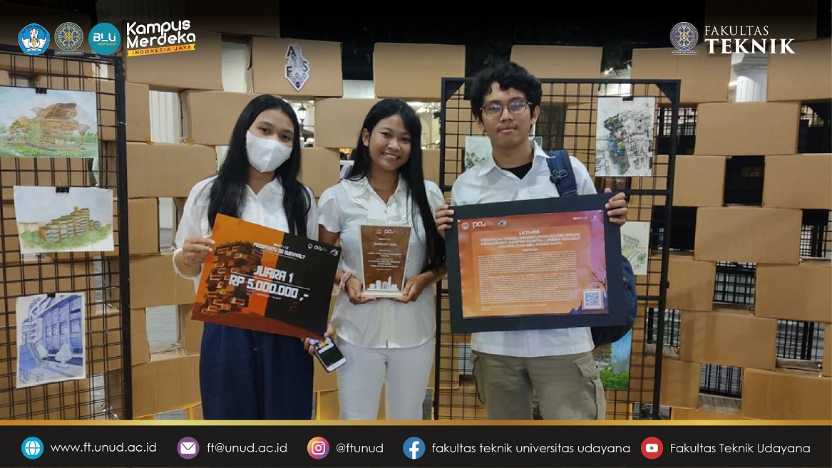 Prestasi yang diraih oleh mahasiswa Program Studi Arsitektur Fakultas Teknik Universitas Udayana dalam ajang lomba karya tulis ilmiah SAN X LKTI “Prosperity or Survival?: Preventing World Destruction through Architecture” di Universitas Kristen Petra Surabaya adalah sebuah pencapaian yang luar biasa. Lomba ini melibatkan peserta dari berbagai perguruan tinggi di Indonesia dan diikuti oleh 21 tim. Dalam ajang tersebut, tim yang terdiri atas Ni Komang Ayu Gita Prasasti, I Gede Cahya Adi Nugraha, dan Ketut Karni berhasil meraih juara 1 dengan judul karya “Pemangku (Panel Ramah Lingkungan): Solusi Mengurangi Sampah Plastik, Limbah Serabut Kelapa, dan Abu Arang Kayu”.