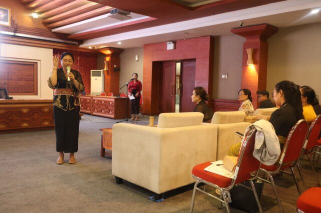 SINKRONISASI – Ketua TP Posyandu Kota Denpasar Ny. Sagung Antari Jaya Negara menghadiri sosialisasi dan sinkronisasi Posyandu 6 SPM di Gedung Sewaka Dharma, Kamis (29/1).