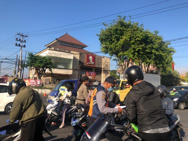 Penyekatan masyarakat serangkaian pelaksanaan PPKM Darurat terus digencarkan di pintu masuk Kota Denpasar. Pada Sabtu (10/7) pagi Tim Gabungan yang terdiri atas unsur Polri, TNI, Satpol PP dan Dishub ini memerintahkan sedikitnya 63 kendaraan yang hendak masuk ke Kota Denpasar disuruh putar balik. Tak hanya itu, 31 orang juga diberikan pembinaan dan 1 orang lainnya diganjar hukuman denda.