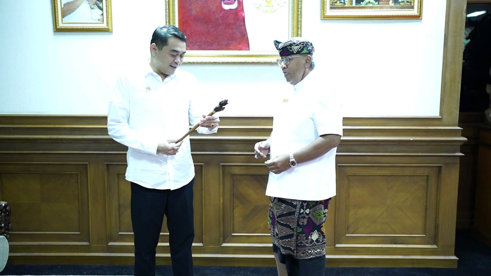 Ketua DPRD Badung Dr. Drs. Putu Parwata MK, M.M., Senin (14/8/2023) menerima tongkat komando dari Komite I Bidang Hukum Dewan Perwakilan Daerah (DPD) RI Arya Wedakarna (AWK). Tanda-tanda apa ini?