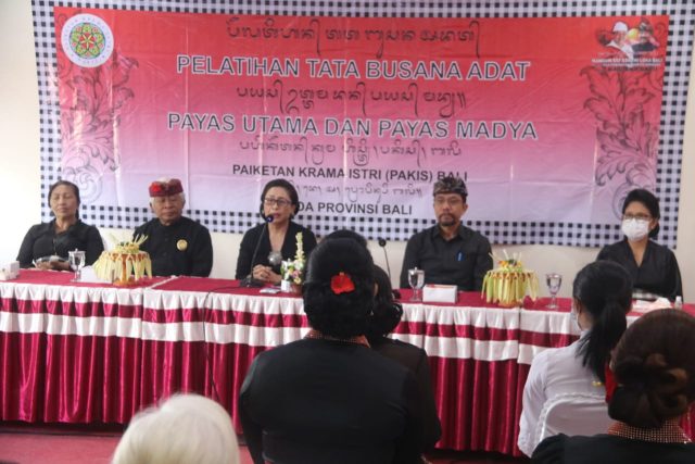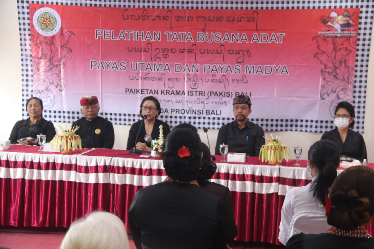 Paiketan Krama Istri (PAKIS) Bali menggelar Pelatihan Tata Busana Adat Payas Utama dan Payas Madya yang digelar di Kantor Majelis Desa Adat Kabupaten Bangli, Jalan Kusumayudha, Bangli, Selasa (Anggara Pon, Langkir) 21 Juni 2022.