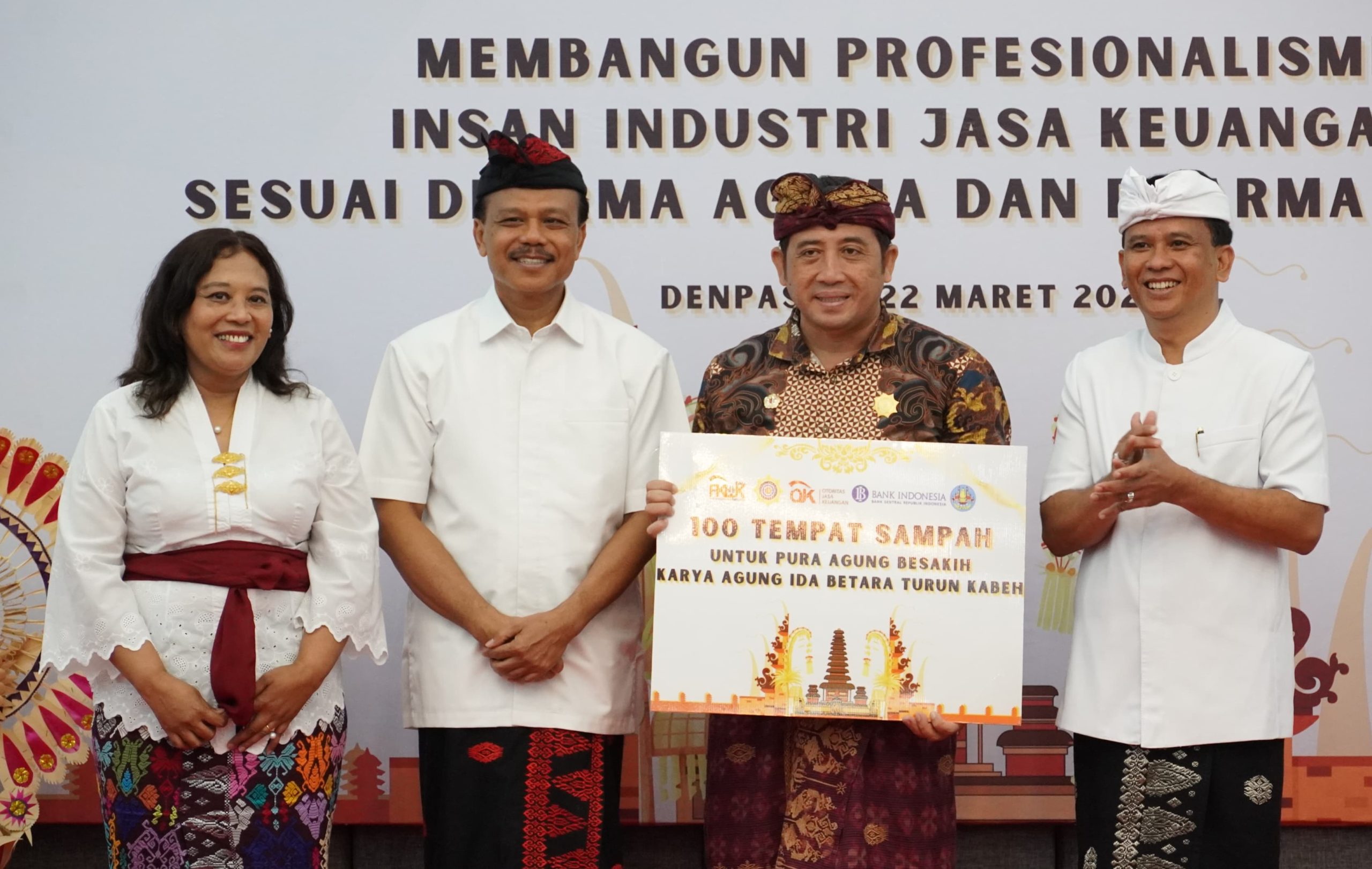 Pada kesempatan yang dihadiri pula Kepala OJK Provinsi Bali Kristrianti Puji Rahayu, diserahkan bantuan 100 tempat sampah untuk menunjang pelaksanaan Karya Ida Bhatara Turun Kabeh (IBTK) di Pura Agung Besakih, Karangasem yang diterima secara simbolih oleh Parisada Hindu Dharma Indonesia (PHDI) Provinsi Bali. (sar/hmprov)