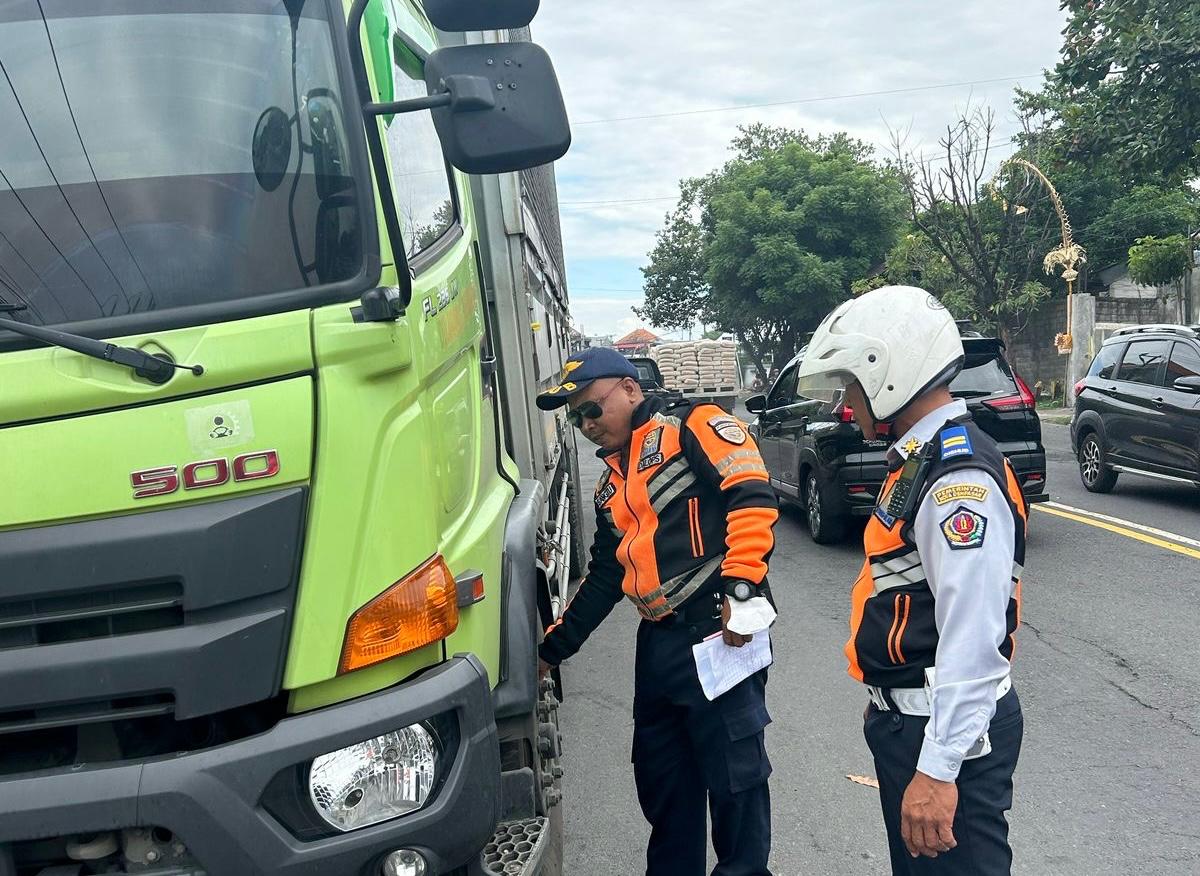 SIDAK LALIN – Tim Dinas Perhubungan Kota Denpasar saat melaksanakan sidak Lalu Lintas dan Angkutan Jalan di Jalan Cargo, pada Senin (28/4).