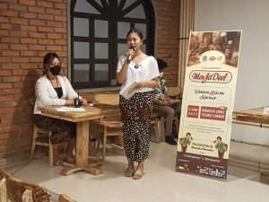 MENJADOEL – Dewa Ayu Sugiarica Joni selaku Dosen Penanggung Jawab Acara Kampanye Menjadoel 2022 didampingi owner Rumah Reina Ayu Aryani dalam press conference Kampanye MenjaDoel, Sabtu (4/6/2022).