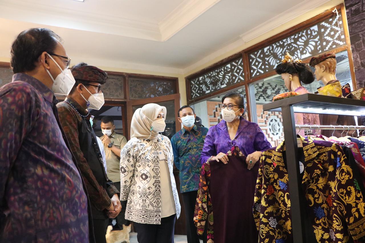 Setiba di lokasi pameran, Menparekraf Sandiaga Uno beserta rombongan langsung diarahkan meninjau stand di bawah Gedung Ksirarnawa yang memamerkan produk kerajinan tenun khas Bali seperti songket dan endek, serta beragam aksesoris berbahan emas atau perak. Di sela-sela peninjauan, Ketua Dekranasda Ny. Putri Koster menerangkan bahwa pameran yang digagasnya ini bertujuan membantu pelaku industri kecil dan menengah (IKM) Bali bangkit dari keterpurukan karena lesunya penjualan akibat pandemi covid-19. Lebih dari itu, pameran ini juga menjadi bagian dari upaya pelestarian kerajinan khas Bali seperti jenis tenun songket dan endek yang belakangan banyak ditiru dan diproduksi secara masal menggunakan mesin atau dibordir.