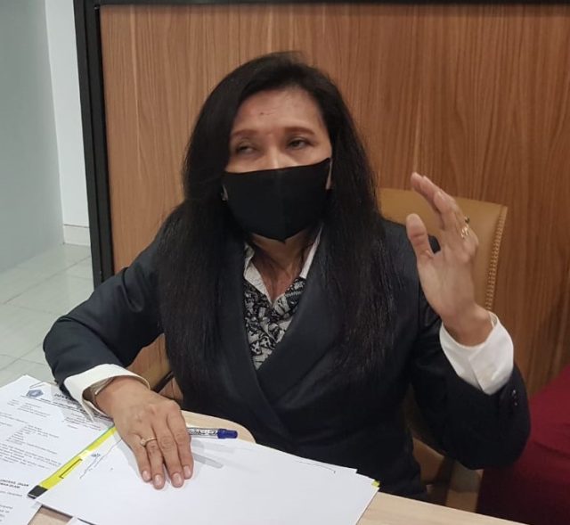 KETERANGAN PERS – Siti Sapura alias Ipung saat memberi keterangan pers kepada sejumlah media, Selasa (15/3).