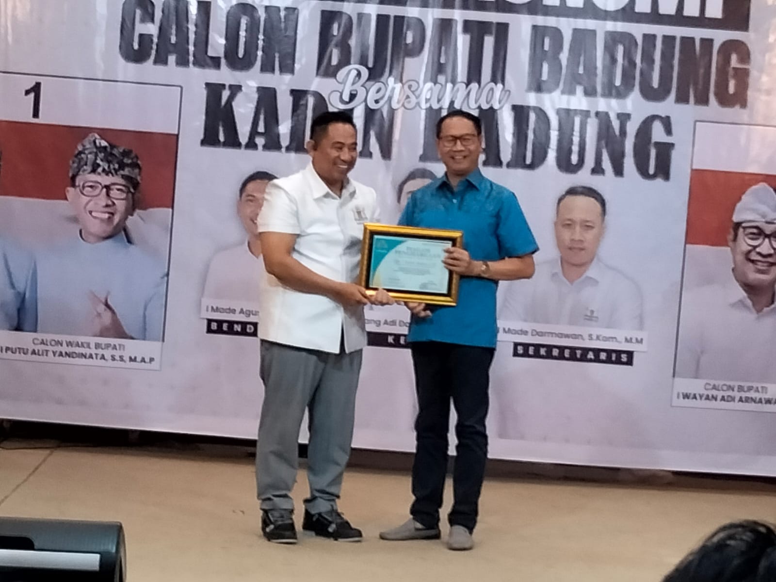 Plt. Bupati Badung Drs. Ketut Suiasa, SH, Jumat (15/11/2024) membuka Dialog Ekonomi Calon Bupati Bersama Kadin Badung di Hotel Made Sempidi. Acara tersebut menghadirkan dua pasangan calon (paslon) Bupati dan Wakil Bupati yakni Paslon Nomor urut 1 Wayan Suyasa dan Putu Alit Yandinata (Suyadinata) dan Paslon Nomor urut 2 Wayan Adi Arnawa dan I Bagus Alit Sucipta (Adi-Cipta). Acara tersebut juga dihadiri Ketua Kadin Badung Putu Gede Putra Adnyana, ketua Bawaslu Badung Heri Indrawan, serta ratusan pengusaha yang tergabung di wadah Kadin Badung.