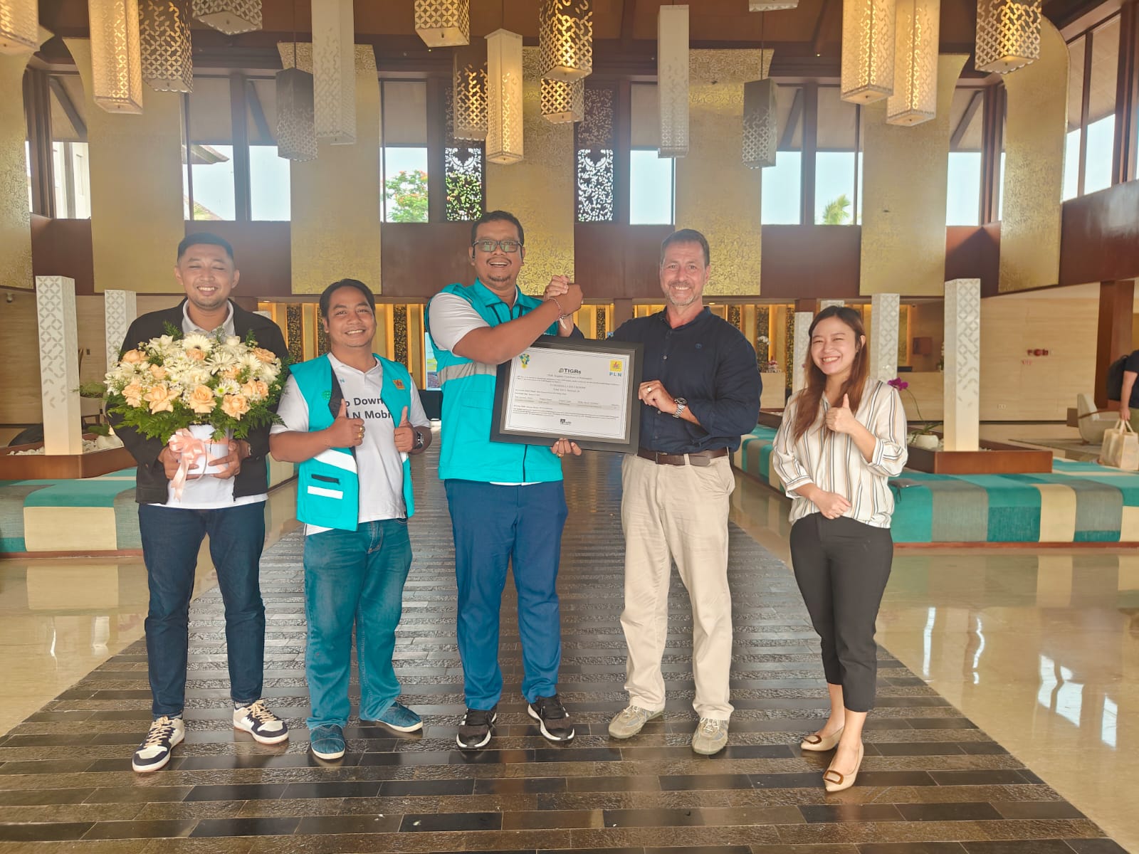 Manager PLN UP3 Bali Selatan I Putu Kariana yang secara simbolis menyerahkan sertifikat REC menyampaikan apresiasinya kepada PT Peninsula Bali Resort sebagai pengelola Courtyard Bali Nusa Dua Resort.