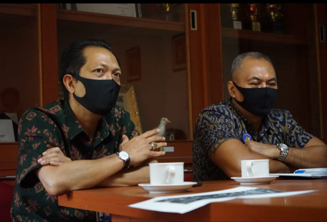 Kadis Dukcapil Kota Denpasar, Dewa Gde Juli Artabrata didampingi Kabid Inovasi Pelayanan, I Gusti Ngurah Agung saat dijumpai di Kantor Disdukcapil Kota Denpasar, Jumat (28/8/2020).