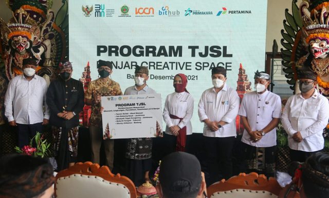 BANTUAN TJSL – Meneg BUMN Erick Tohir menyerahkan bantuan TJSL kepada 5 banjar di Bali, Senin (27/12/2021).