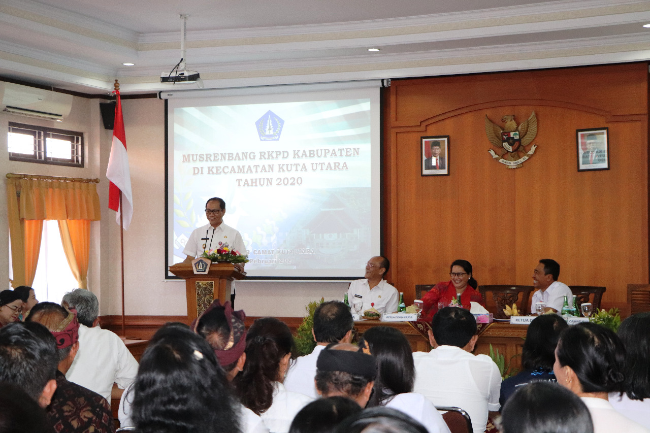 Untuk kali ketiga diadakannya pelaksanaan acara musyawarah perencanaan pembangunan (Musrenbang), Rencana Kerja Pembangunan Daerah (RKPD) Kabupaten Badung Tahun 2020 di Kecamatan Kuta Utara, Rabu (5/2). Musrenbang yang dilaksanakan di Ruang Rapat Sekar Jepun Kantor Camat Kuta Utara ini mengambil tema “Akselerasi Ekonomi Melalui Peningkatan SDM Unggul, Penguatan Infrastruktur, Budaya dan Lingkungan Hidup”.