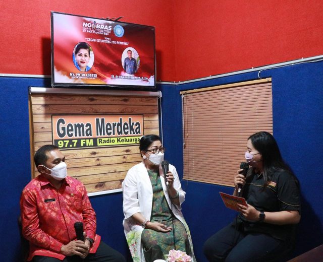 NARASUMBER – Ketua TP PKK Provinsi Bali Ny. Putri Koster menjadi narasumber dalam acara Ngobras di Radio Gema Merdeka yang membahas soal pencegahan stunting.