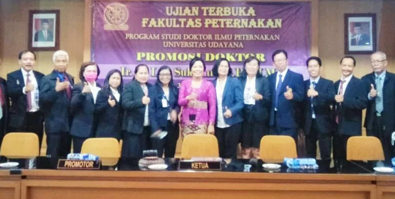 Fakultas Peternakan Universitas Udayana, kembali melahirkan seorang doktor di bidang Ilmu Peternakan, Ni Luh Sukadani merupakan Kepala UPTD Rumah Kreatif Dinas Perindustrian dan Perdagangan Provinsi Bali melalui ujian terbuka promosi doktor yang dipimpin Ketua Sidang, Dekan Fakultas Peternakan Universitas Udayana Dr. Ir. I Nyoman Tirta Ariana, MS., IPU., Kamis, 30 Juni 2022.