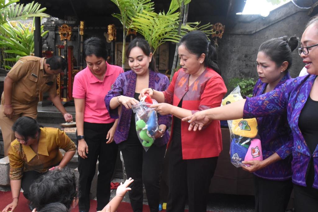 Dalam kesempatan tersebut turut mendampingi Ketua GOW Kota Denpasar, Ny. Ayu Kristi Arya Wibawa, Ketua TP PKK Kecamatan Denpasar Barat, Ny. Ida Ayu Alit Maharatni Purwansara serta jajaran OPD terkait lainnya.