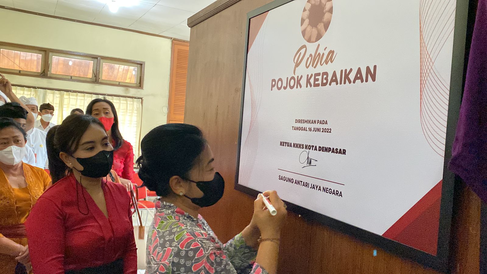 Peresmian itu sendiri ditandai dengan penandatangan oleh Ny. Antari Jaya Negara pada papan peresmian yang terpampang di tembok ruang POBIA. Saat peresmian, Ny. Antari Jaya Negara didampingi Wakil Ketua K3S Kota Denpasar, Ny. Ayu Kristi Arya Wibawa, Ketua DWP Kota Denpasar Ny. Ida Ayu Widnyani Wiradana dan Kepala Dinas Sosial Kota Denpasar, I Gusti Ayu Laxmy Saraswati. Turut hadir pula, Ketua Gatriwara Kota Denpasar, Ny. Purnamawati Ngurah Gede dan Anggota Komisi IV Bidang Kesejahteraan DPRD Kota Denpasar Cyntia Febriani.
