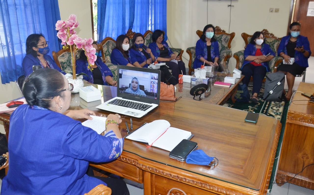 KANKER – Ketua Umum BKOW Bali Ny. Cok. Ace saat mengikuti sosialisasi kanker payudara di tengah pandemi covid-19 untuk wilayah Indonesia Tengah, Selasa (6/10/2020).