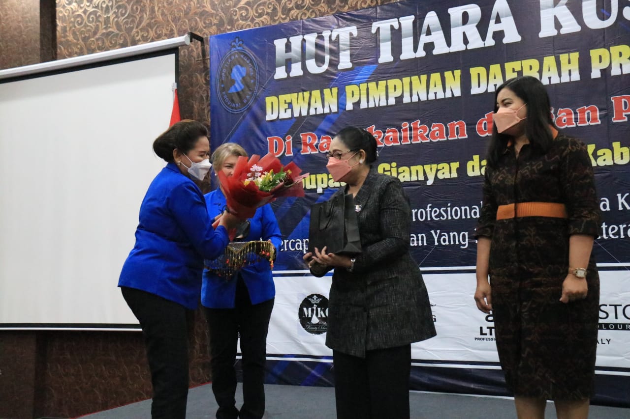 SELAMAT – Ketua BKOW Bali memberi ucapan selamat kepada DPD Tiara Kusuma Propinsi Bali yang menginjak usia 42 tahun.