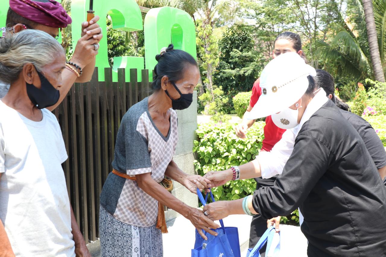 Untuk kegiatan hari Minggu ini, Ny. Putri Koster menyerahkan 260 paket sembako yang disalurkan dan disiapkan oleh pihak Krisna Oleh-Oleh yang diharapkan dapat meringankan beban masyarakat yang membutuhkan, sekaligus mampu membangkitkan semangat gotong royong bagi pihak pihak lain yang memiliki kemampuan lebih.
