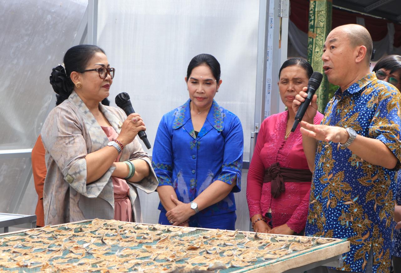 “Mengolah sumber daya alam berupa ikan tentu saja sangat bagus untuk memperkuat perekonomian keluarga, namun lebih penting lagi apabila pemenuhan kebutuhan pangan berupa ikan itu terlebih dahulu mampu berfungsi untuk menunjang pemenuhan kebutuhan hidup kita. Apabila kita sudah cukup terpenuhi kebutuhan makanan kita, maka produksi untuk memutar ekonomi keluarga melalui produksi ikan dan kemudian dipasarkan bahkan ekspor tentu sangat baik,” tegas Ny. Putri Koster yang aktif mengawal pengembangan produk UMKM di Bali.