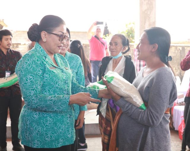 Dalam kesempatan kali ini di setiap lokasi kunjungan, Ketua TP PKK Bali menyerahkan bantuan kepada 50 warga kurang mampu, yang terdiri atas lansia, ibu hamil, penyandang disabilitas, kader PKK dan balita. Masing-masing menerima 20 kg beras dan 1 krat telur. Khusus untuk balita, lansia, ibu hamil, penyandang disabilitas dan kader PKK mendapat tambahan susu dengan jumlah bervariasi dan jenis disesuaikan dengan kebutuhan. Balita dan lansia memperoleh masing-masing 8 kotak susu, sedangkan ibu hamil, penyandang disabilitas dan kader PKK mendapat bantuan 2 kotak susu.