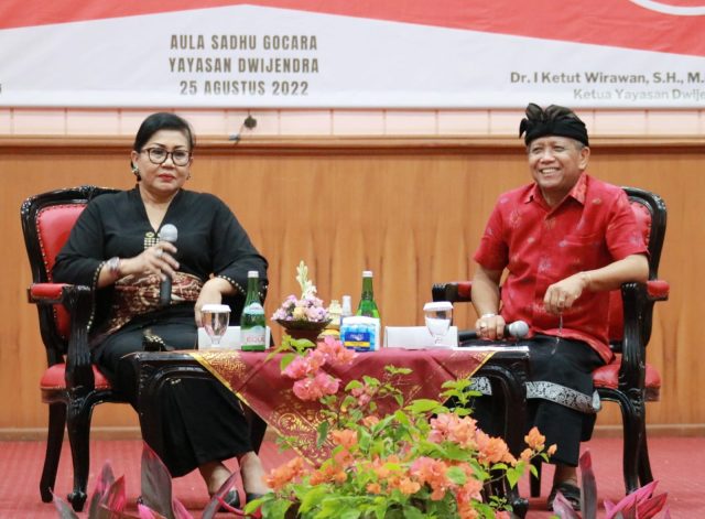 Hal ini disampaikan Ny. Putri Suastini Koster selaku Ketua Tim Penggerak PKK Provinsi Bali saat diundang sebagai narasumber dalam seminar “Peranan Generasi Muda Dalam Pembangunan Budaya Bali” yang diselenggarakan secara hybrid oleh Universitas Dwijendra, di Aula Sadhu Gocara-Yayasan Dwijendra, Kamis, Wraspati Pon Wuku Uye (25/8).