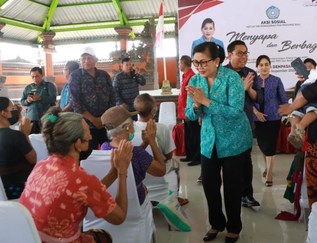 Ketua TP PKK Provinsi Bali Ny. Putri Koster kembali menggelar aksi sosial “Menyapa dan Berbagi”. Aksi sosial yang menyasar para lansia, difabel, ibu hamil, balita serta kader PKK di Kota Denpasar ini diselenggarakan di dua lokasi berbeda yaitu untuk Kecamatan Denpasar Utara dan Denpasar Barat dipusatkan di Wantilan Pura Dalem Penataran Batan Dulang, Desa Adat Pohgading dan lokasi kedua untuk Denpasar Selatan dan Denpasar Timur dipusatkan di Wantilan Sewaka Prema Desa Adat Renon, Kecamatan Denpasar Selatan, pada Sabtu (26/11).