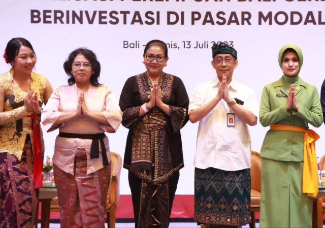 CERDAS BERINNESTASI – Ketua TP PKK Provinsi Bali Ny. Putri Suastini Koster mengapresiasi sosialisasi perempuan Bali cerdas berinvestasi di pasar modal yang digelar di Hotel Padma Legian, pada Kamis (13/7).