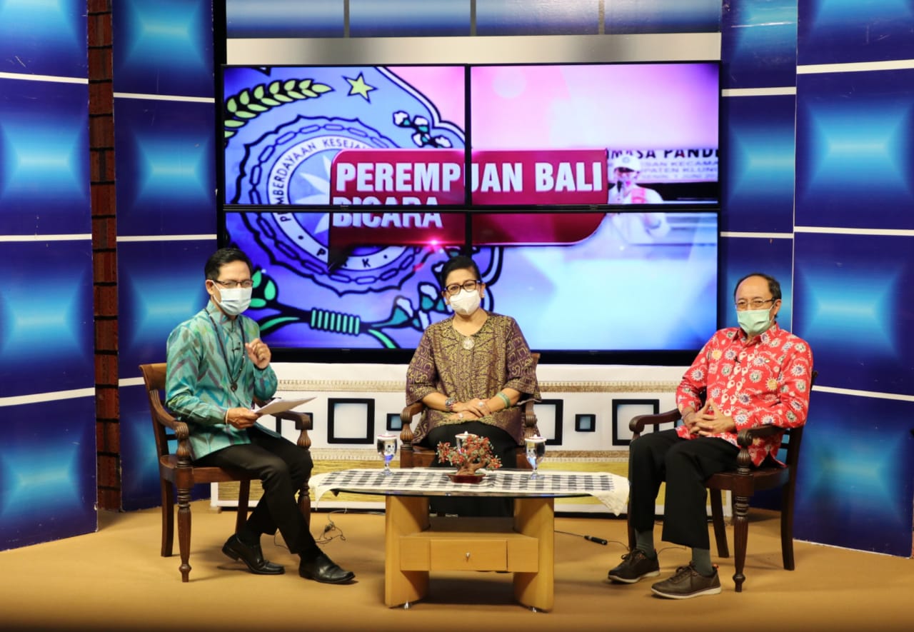 TANGGAP COVID – Ny. Putri Koster dalam dialog PKK Tanggap Covid-19 di sebuah stasiun TV lokal di Denpasar, Selasa (1/12/2020).