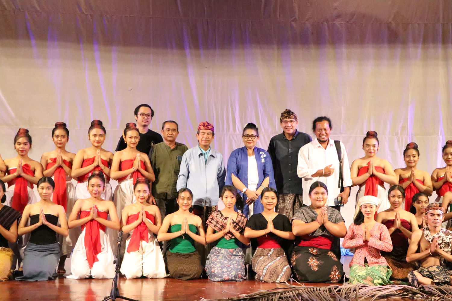 SASOLAHAN – Ketua TP PKK Provinsi Bali Ny. Putri Koster menyaksikan sasolahan Kedung Rasmi Sancaya Sanggar Mahasaba FIB Unud.