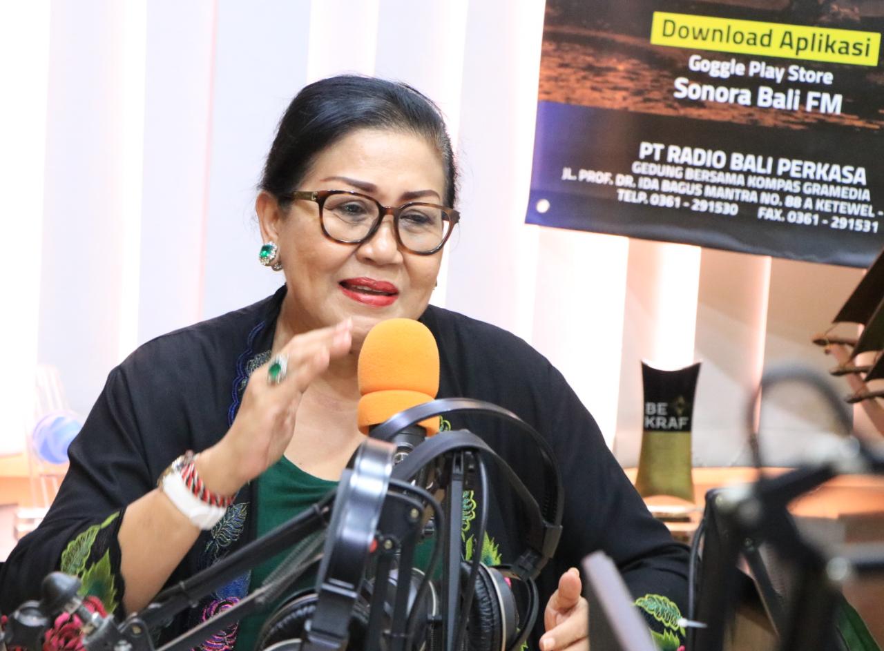 DIALOG – Ketua TP PKK Provinsi Bali Ny. Putri Koster saat dialog “Cegah Radikalisme Dengan Merajut Kebhinekaan”, di Radio Sonora FM, Jumat (16/12).