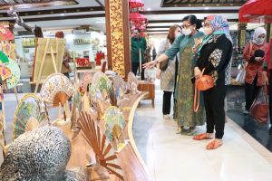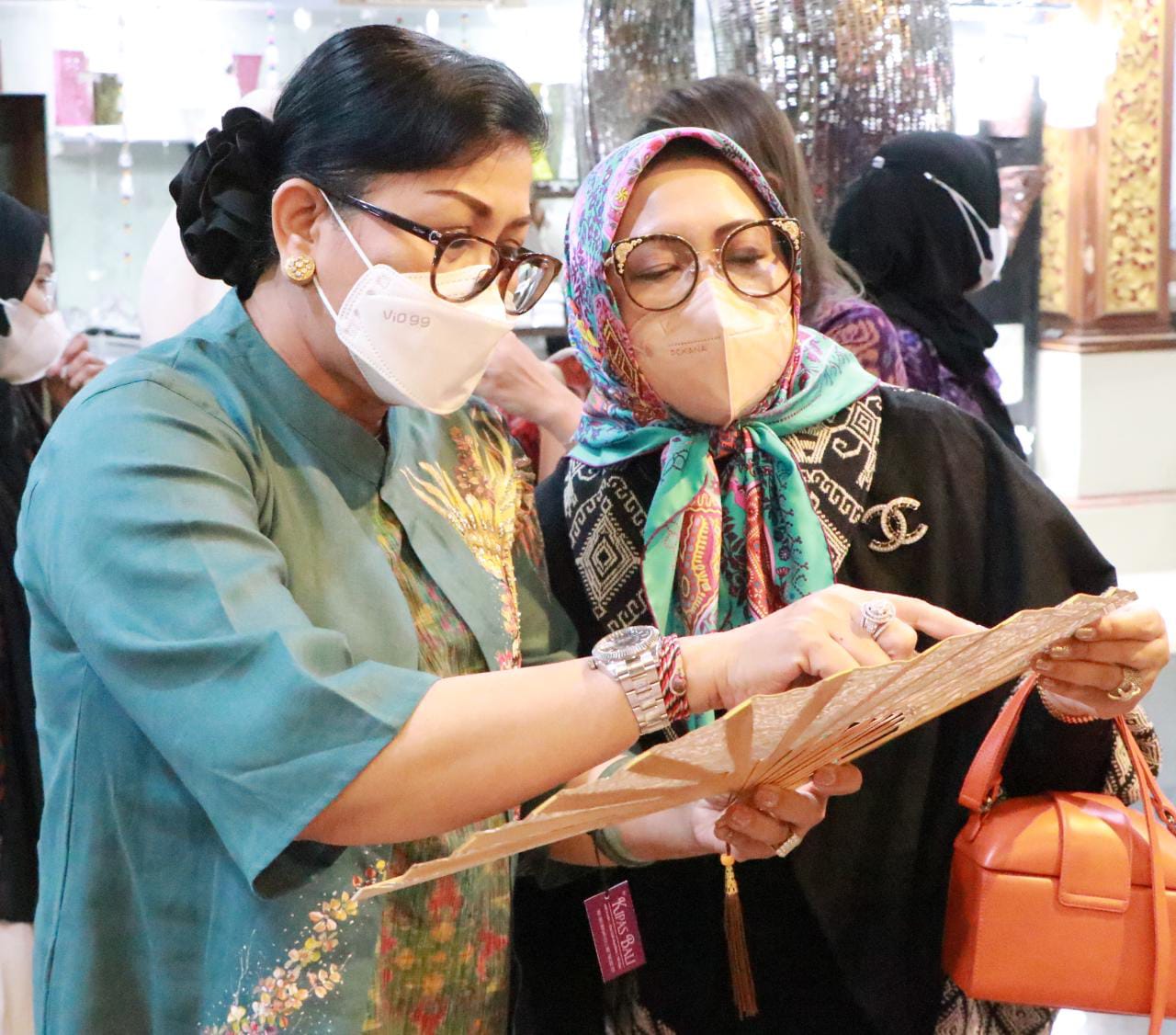 Ketua TP PKK Provinsi Bali yang juga selaku Ketua Dewan Kerajinan Nasional Daerah (Dekranasda) Provinsi Bali Ny. Putri Suastini Koster didampingi Kepala Dinas Perindustrian dan Perdagangan (Disperindag) Provinsi Bali I Wayan Jarta menerima kunjungan rombongan Ikatan Istri Karyawan Bank Mandiri (IIKM) pada ajang Pesta Kesenian Bali (PKB) ke-44 di Taman Budaya Denpasar pada Sukra Pon Wuku Medangsia (Jumat, 1 Juli 2022).