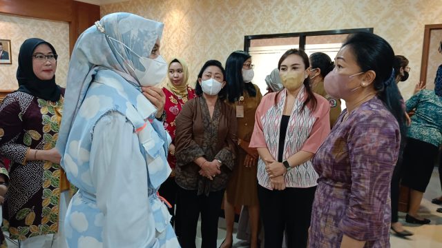 Saat menerima kunjungan Bunda PAUD Kota Denpasar Ny. Sagung Antari Jaya Negara didampingi Ketua GOW Kota Denpasar Ny. Ayu Kristi Arya Wibawa dan Ketua DWP Kota Denpasar Ny. Ida Ayu Widnyani Wiradana.