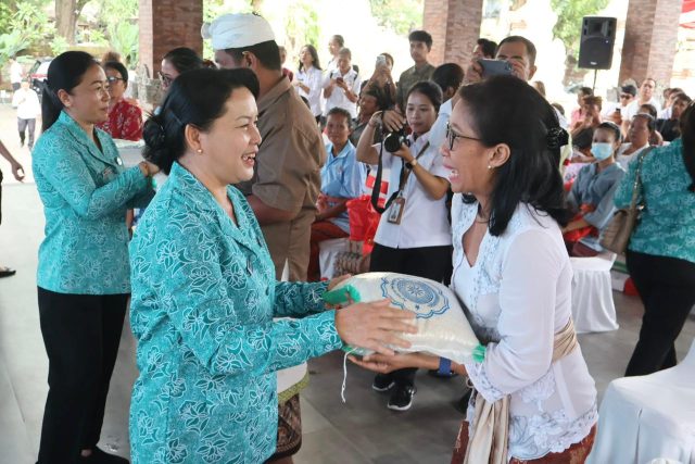 Sekretaris I TP PKK Provinsi Bali Ny. Seniasih Giri Prasta mewakili Ketua TP PKK Provinsi Bali, berkesempatan menyapa warga Denpasar dalam kegiatan Aksi Sosial TP PKK Provinsi Bali “Menyapa dan Berbagi” yang berlangsung di Wantilan Pura Dalem Nyanggelan, Desa Adat Yangbatu, Denpasar Timur, pada Rabu (2/7).