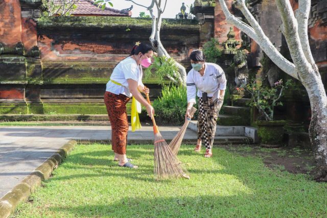 Ketua TP PKK Kabupaten Badung Ny. Seniasih Giri Prasta bersama organisasi kewanitaan yang ada di Kabupaten Badung melaksanakan kegiatan ngayah mareresik di Pura Lingga Bhuwana sekaligus dirangkaikan dengan acara Sosialisasi Anti Narkoba, bertempat di Wantilan Pura Jaba Lingga Bhuwana di Puspem Badung, Sabtu (4/12).