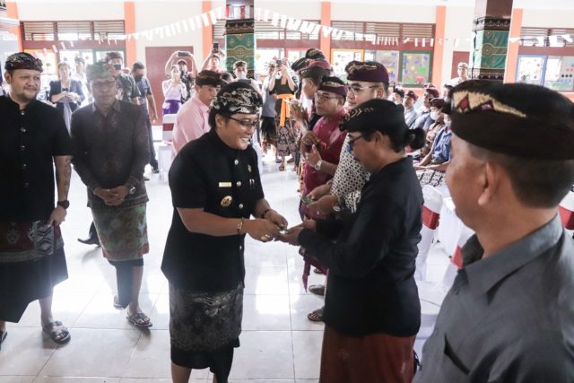 BKK – Bupati Badung Nyoman Giri Prasta saat menyerahkan Bantuan Keuangan Khusus (BKK) Perubahan Tahun Anggaran 2022 kepada Desa se-Kabupaten Badung, bertempat di Wantilan Pura Dalem Desa Sedang, Kecamatan Abiansemal, Sabtu (8/10).