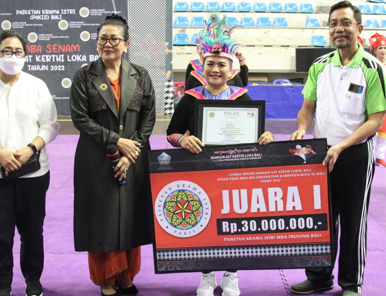 Pasikian Paiketan Krama Istri (PAKIS) Majelis Desa Adat Provinsi Bali menggelar Lomba Senam “Nangun Sat Kerthi Loka Bali” di GOR Lila Bhuana, Jalan Melati Denpasar, Jumat (Sukra Kliwon Tolu), 25 November 2022. Lomba senam melibatkan 66 tim yang merupakan perwakilan PAKIS dari 57 kecamatan dan 9 kabupaten/kota se-Bali. Masing-masing tim yang terdiri atas lima orang pesenam unjuk kebolehan dengan penampilan terbaik mereka. Setelah melalui penilaian ketat, terpilih sembilan tim yang melaju ke final yang penampilannya disaksikan langsung oleh Manggala Utama PAKIS MDA Provinsi Bali Ny. Putri Suastini Koster.