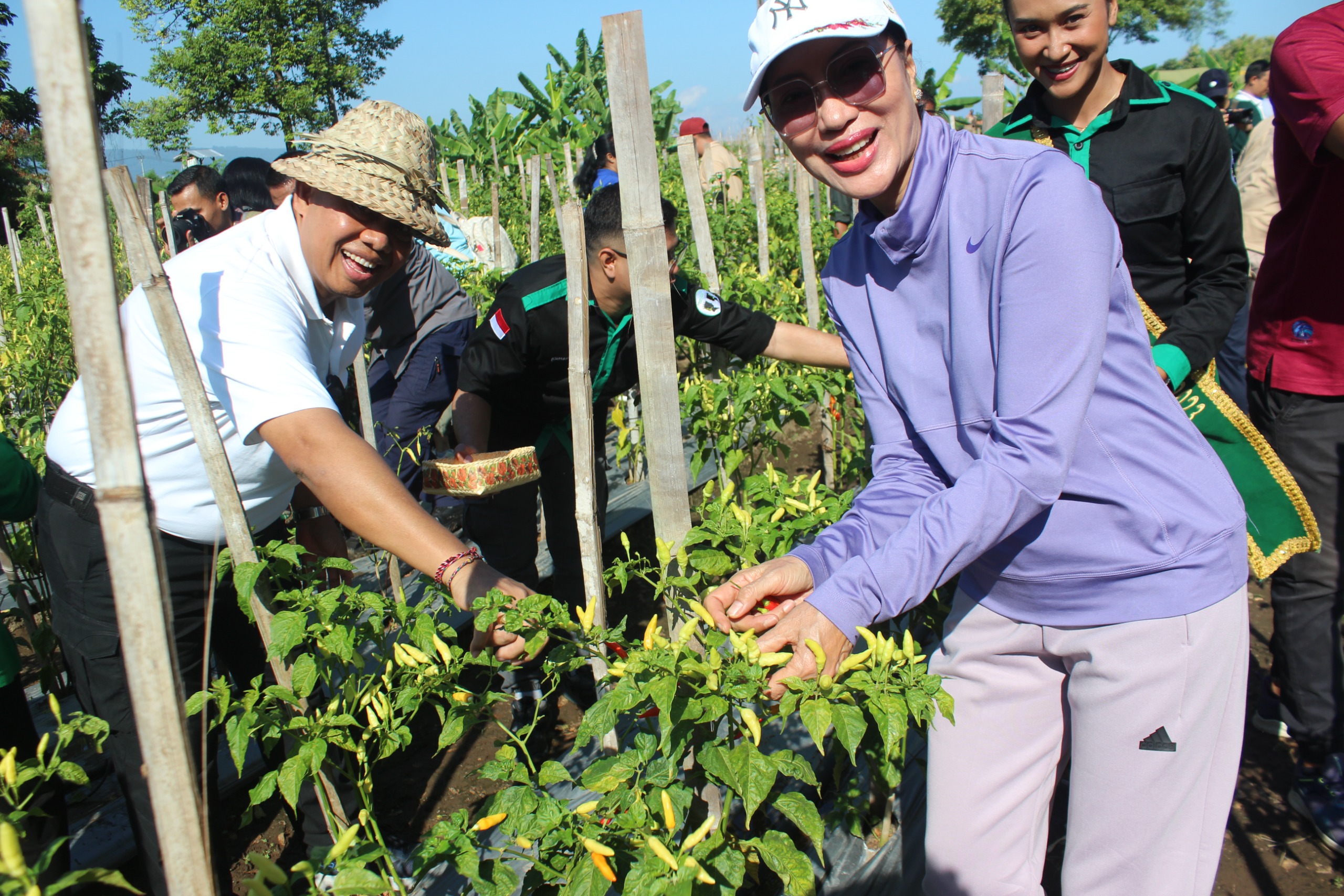 PANEN BERSAMA – Pj. Gubernur Mahendra Jaya menghadiri panen bersama Pemkab Buleleng di lahan perkebunan Pemkab Buleleng, Kelurahan Banyuasri, Kecamatan Buleleng, Selasa pagi (18/6).