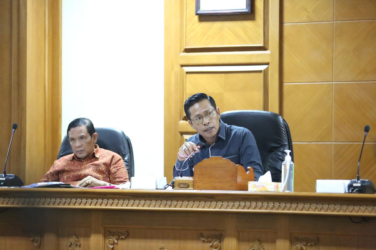 RAKER – Ketua Pansus Penyelenggaraan Perizinan Berusaha DPRD Badung Made Ponda Wirawan menggelar raker dengan instansi terkait, Senin (25/4/2022).