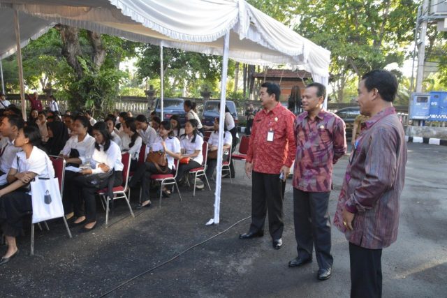 Sekretaris Daerah Provinsi Bali Dewa Made Indra didampingi Kepala Badan Kepegawaian Daerah (BKD) Provinsi Bali Ketut Lihadnyana memantau hari pertama pelaksananan Seleksi Kompetensi Dasar (SKD) Calon Pegawai Negeri Sipil (CPNS) Provinsi Bali di Gedung BPSDM Provinsi Bali, Selasa (28/1/2020).