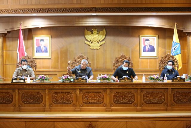 PARIPURNA – Ketua DPRD Badung Putu Parwata membuka rapat paripurna DPRD Badung dengan agenda jawaban pemerintah, Selasa (17/11/2020).