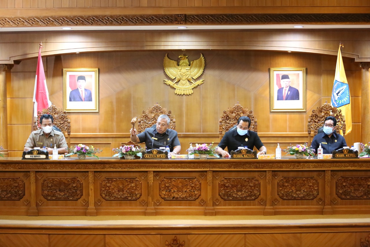 Rapat paripurna tersebut khusus mengagendakan jawaban pemerintah terhadap pemandangan umum (PU) fraksi-fraksi DPRD Badung yang disampaikan sebelumnya. Jawaban ini menyangkut lima ranperda yakni ranperda Kabupaten badung tentang APBD tahun anggaran 2021, ranperda tentang rencana detail tata ruang Kecamatan Kuta Utara, Ranperda tentang penyertaan modal daerah pada Perusahaan Umum Daerah Air Minum Tirta Mangutama, Ranperda tentang pencegahan dan penanganan korban tindak pidana perdagangan orang, serta ranperda tentang perubahan atas Perda 18 tahuan 2018 tentang penyertaan modal daerah pada Perusahaan Umum Daerah Pasar Mangu Giri Sedana.
