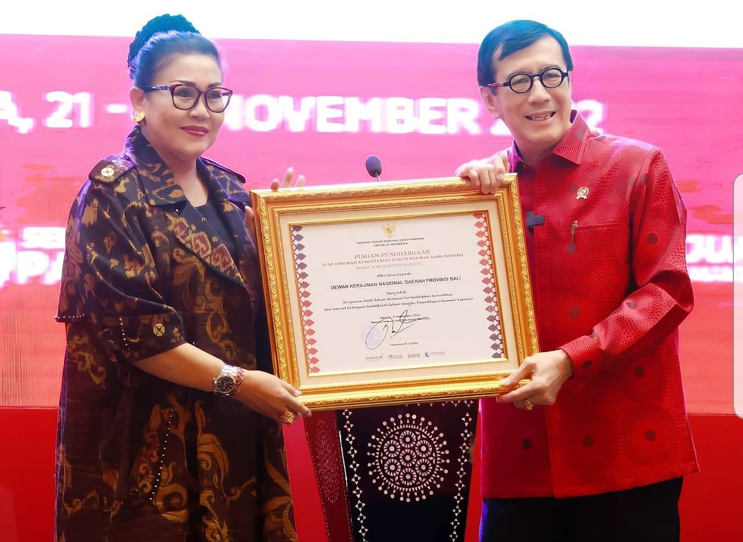 Gubernur Bali Wayan Koster menerima penghargaan dari Kementerian Hukum dan Hak Asasi Manusia RI atas prestasi Memacu Pertumbuhan Kreativitas dan Inovasi Kekayaan Intelektual dalam rangka Pemulihan Ekonomi Nasional. Penyerahan penghargaan ini dilaksanakan dalam acara Roving Seminar Kekayaan Intelektual pada Senin (21/11) di Birawa Assembly Hall, Bidakara Hotel Jakarta, DKI Jakarta.