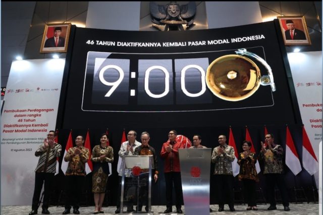 Pada 10 Agustus 2023, Otoritas Jasa Keuangan (OJK) bersama Self-Regulatory Organization (SRO) yang terdiri dari PT Bursa Efek Indonesia (BEI), PT Kliring Penjaminan Efek Indonesia (KPEI), dan PT Kustodian Sentral Efek Indonesia (KSEI), memperingati 46 Tahun Diaktifkannya Kembali Pasar Modal Indonesia yang mengusung tema “Bersinergi untuk Indonesia Maju dan Pengembangan Berkelanjutan”. Acara ini diselenggarakan secara hybrid yang dibuka dengan Seremoni Pembukaan Perdagangan dan dilanjutkan dengan Konferensi Pers oleh OJK bersama SRO.