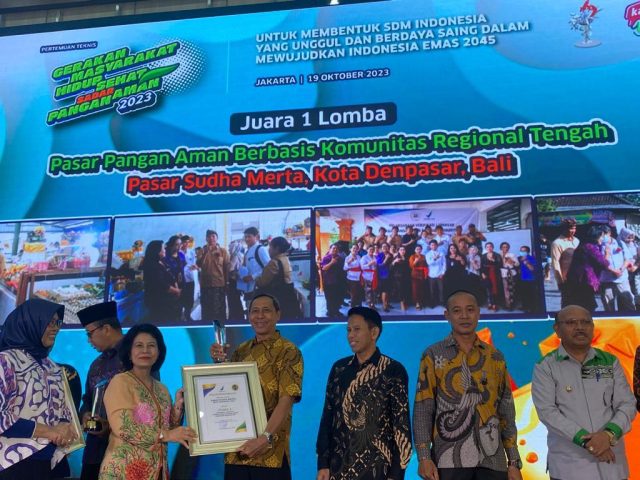 JUARA 1 – Pasar Sudha Merta Sidakarya ditetapkan sebagai juara 1 lomba pasar pangan aman tingkat nasional.