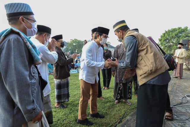 SHALAT IED – Sekda Badung Wayan Adi Arnawa memantau langsung pelaksanaan Shalat Ied Hari Raya Idul Fitri di Lapangan Puspem Badung, Senin (2/5).
